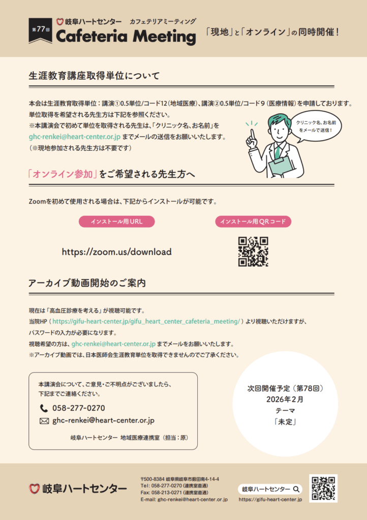 電話:058-277-0270 メール:ghc-renkei@heart-center.or.jp (地域医療連携室:原)